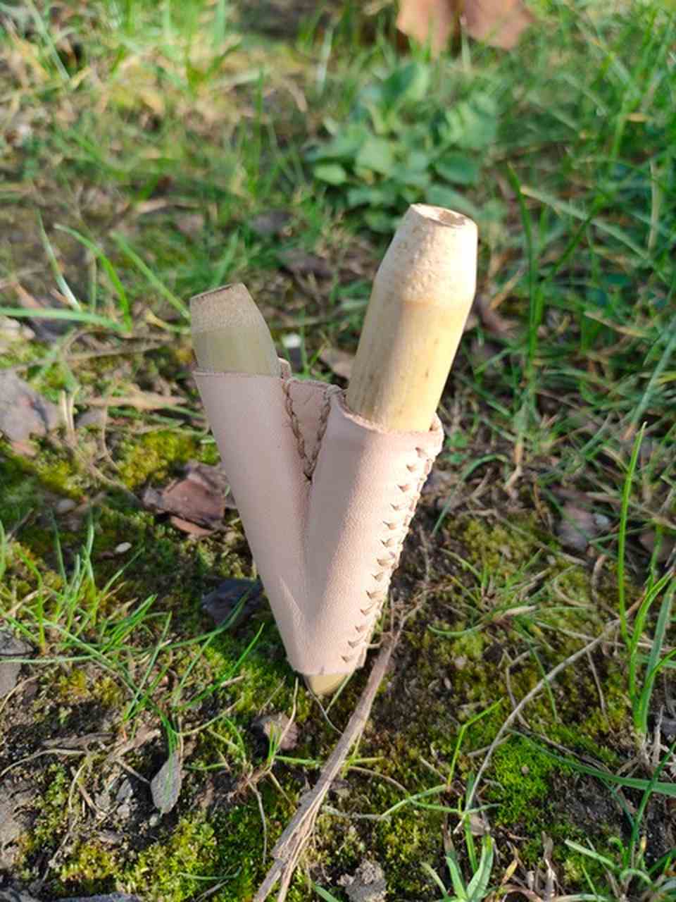 Handmade tube made of bamboo. The carefully made form is wrapped in leather that is pleasant to the hand and the eye.