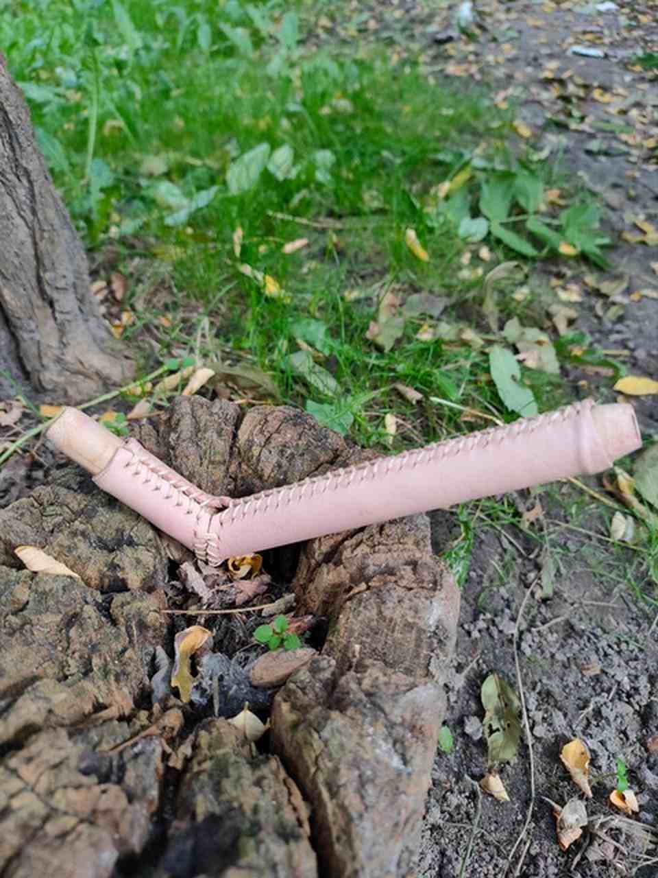 Handmade tube made of bamboo. The carefully made form is wrapped in leather that is pleasant to the hand and the eye.